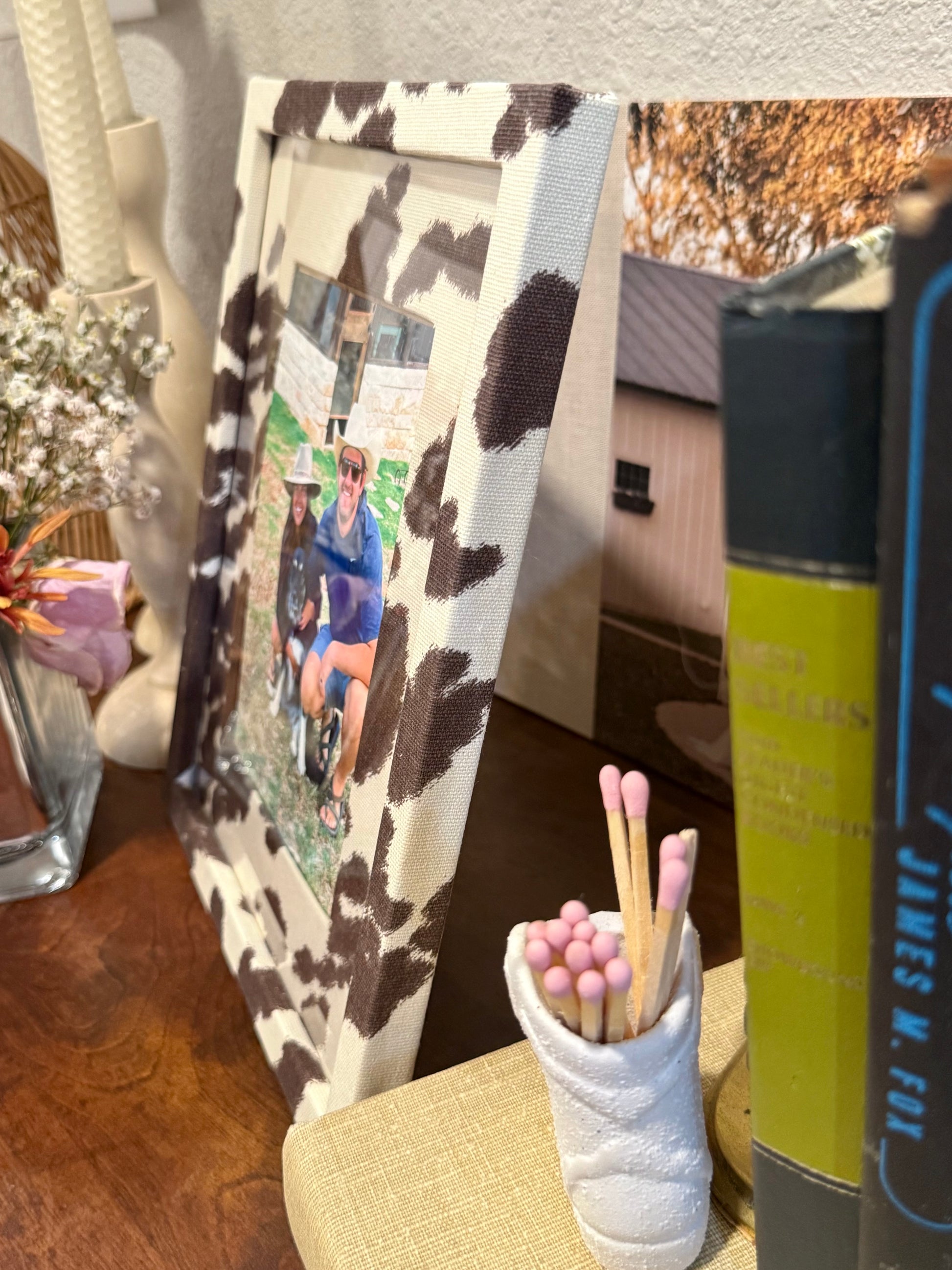 Note: Each frame is individually wrapped by hand. Because of this process, the pattern placement and texture may vary slightly from piece to piece — a soft edge here, a shifted weave there, making your frame perfectly unique. Thank you for supporting a small business!