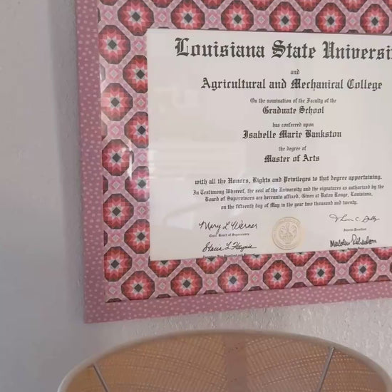 Colorful Mauve Diploma Frame - Fabric Wrapped Frame and Mat